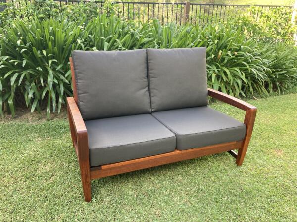 2m wide x 850mm deep. Comes with full cushions in sunproof fabric. Available in 3 seat, 2 seat and single seat options.